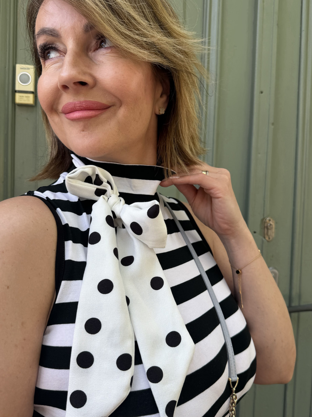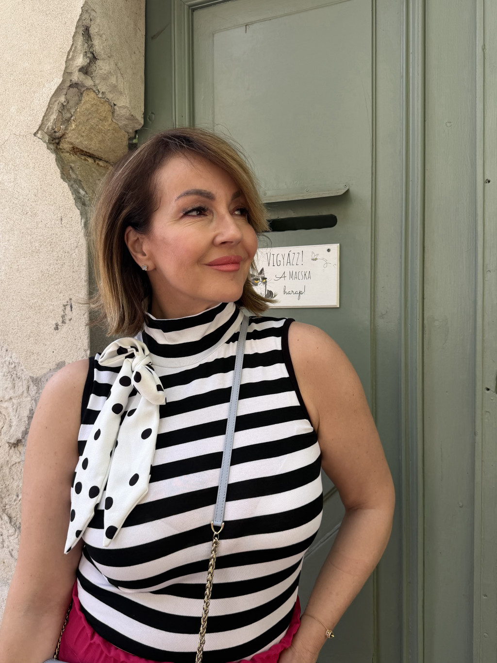 Celine csíkos ujjatlan felső (fehér pöttyös masnival)
