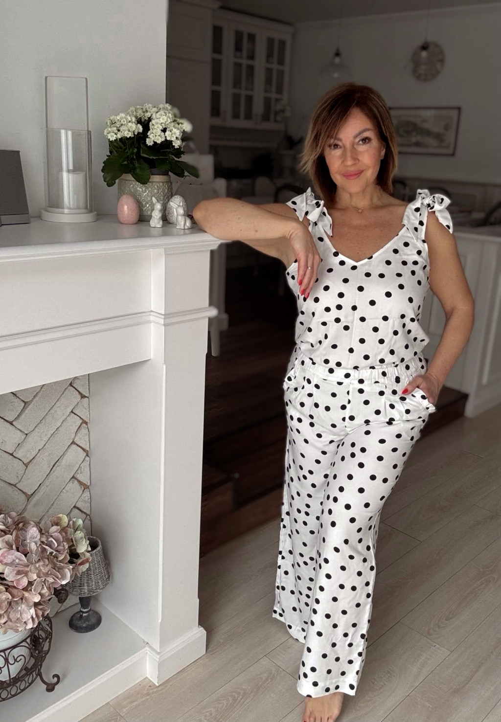 Csodás palazzo nadrágokat készítettünk közkívánatra Nektek. Elrejtettünk benne egy kis nőies eleganciát, a fodros zsebek és fodros derékrész mentén. A pöttyök játéka pedig igazi külünlegességet csempész bele a megjelenésedbe.