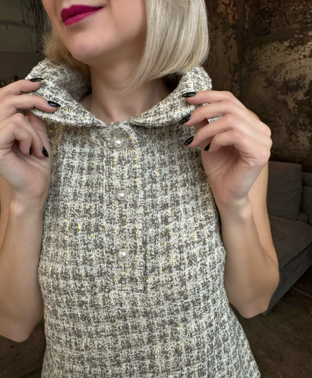 Bézs-arany buklé kisruha